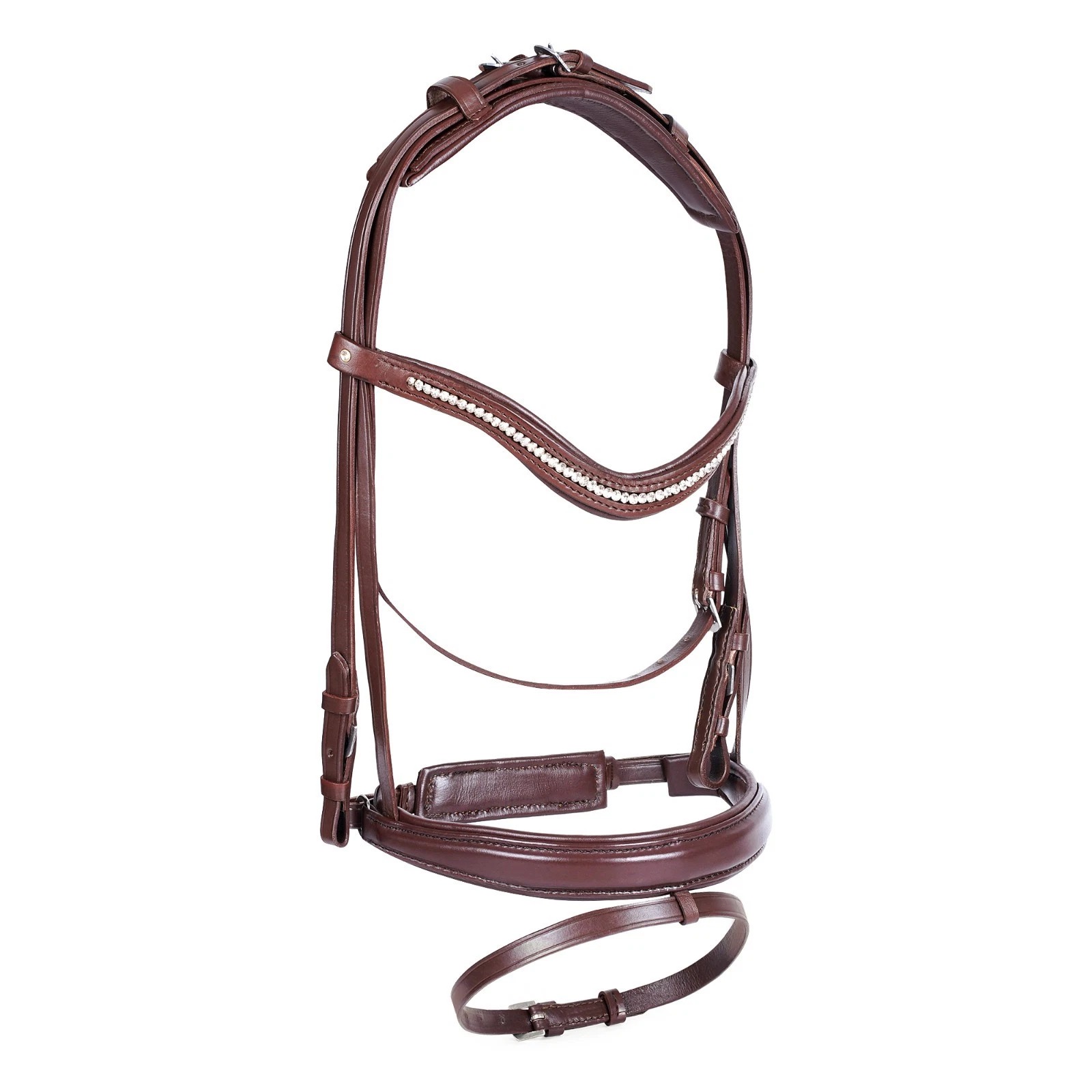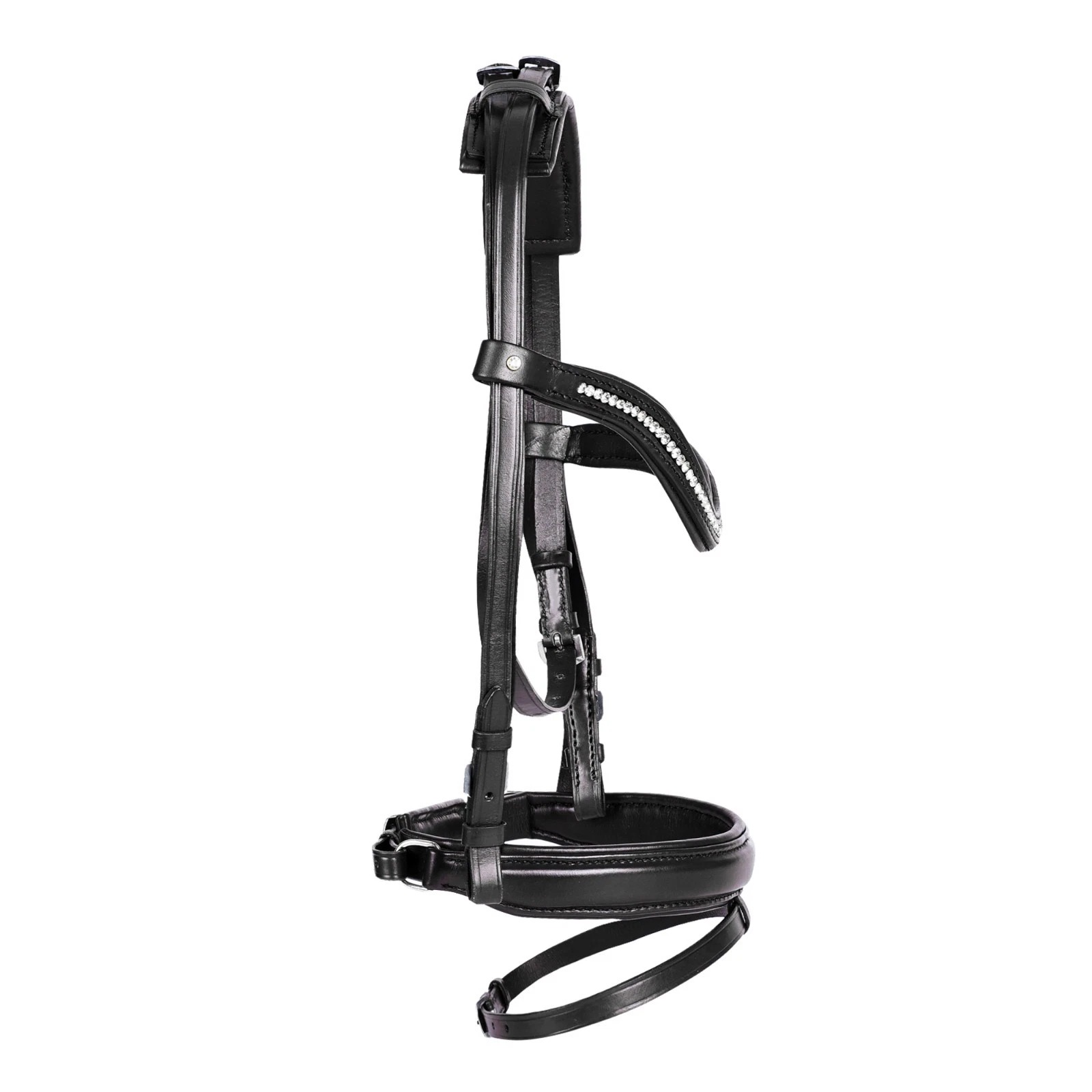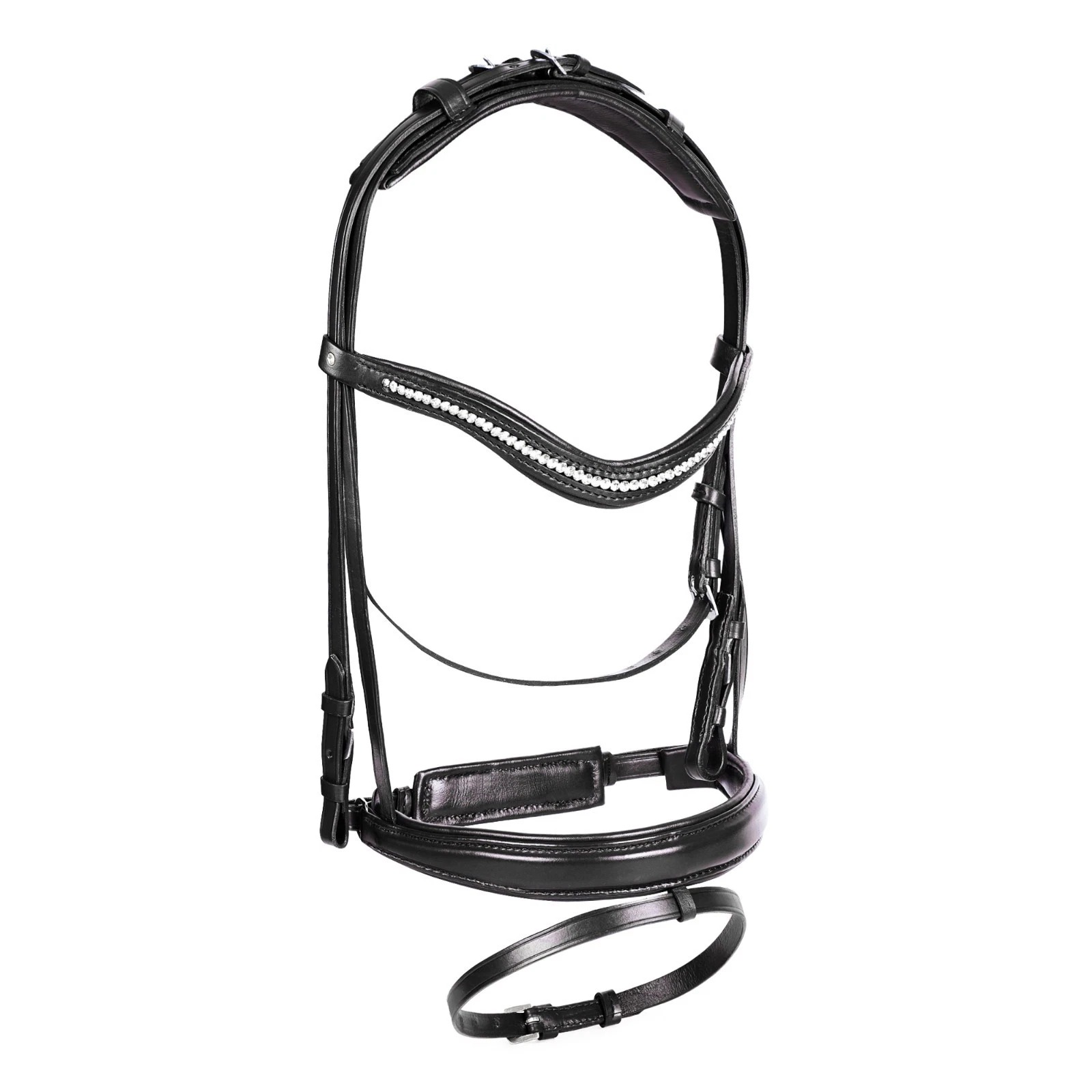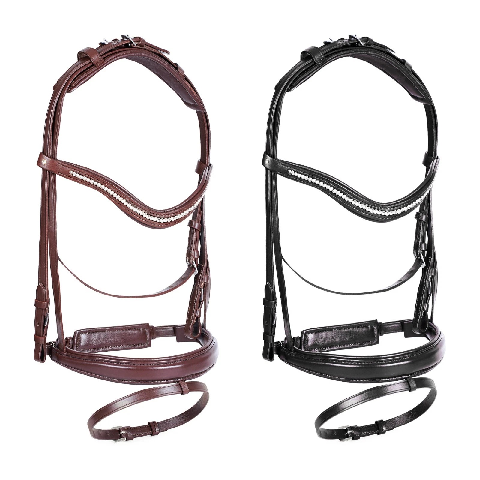 The Comfort Padded Cow Leather Horse Hunter Bridle by GALLOP SHOP is a high-quality and stylish option for hunters. Made from durable leather, this bridle features a jeweled inch noseband for added control and a free grip rein for a secure hold. Designed for larger horses, this hunting bridle is both practical and fashionable, perfect for any rider hitting the field. Crafted in Pakistan, this black bridle is a must-have for any equestrian enthusiast looking for comfort and style in their riding gear.
