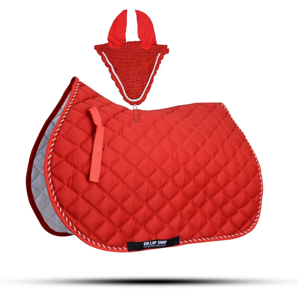 Explore the delightful combination of practicality and style with our Gallop Shop Numnah Saddle Pad, complete with a matching fly veil bonnet set. Crafted from premium cotton material, this set ensures your horse stays comfortable during rides while you add a pop of colour to your equestrian ensemble with the multicoloured design. Proudly made in the United Kingdom, this saddle pad is not only an essential accessory for your riding kit but also an indication of your attention to detail and style. The set is a wonderful fusion of function and fashion, perfect for riders who appreciate quality and a touch of flair.